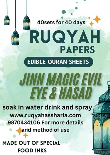 Ruqyah edible Quran sheets are specially made from food-grade halal inks and printed with powerful Quranic verses ensuring that they are safe for consumption and beneficial for your health and spiritual well-being.. These verses are carefully selected to protect the individual from harmful forces such as Jinn, black magic, and the evil eye. The unique approach of using edible sheets means that the blessings of the Quranic verses are absorbed directly into the body, allowing for spiritual purification and protection from within. When these sacred words are printed on sheets and consumed, the protective effects are said to work on a physical, mental, and spiritual level.